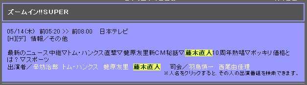 5/14日追記アリ♪ 藤木直人4年半ぶり公開イベントに緊張 日刊スポーツ - 2 時間前 http://www.nikkansports.com/entertainment/news/f-et-tp0-20090513-493935.html 俳優で歌手藤木直人(36)が13日、東京・池袋のサンシャイン噴水広場で新曲「CRIME OF LOVE/いいんだぜ」の発売記念イベントを行った。4年半ぶりの公開イベントで、約2000人のファンがステージを囲み、藤木は「嫌な感じですね。緊張しますね。 ... 藤木直人フリーイベントに2000人来場! 本人へのサプライズ企画も実施 @ぴあ 2009年5月13日19時0分配信 http://news.pia.jp/pia/news.do?newsCd=200905130009 藤木直人がシングル発売記念で4年半ぶりに、オープンスペースに登場 TV LIFE 2009年5月13日(水) 18時33分 http://www.tvlife.jp/news/090513_05.php 藤木直人、デビューから10年振り返り 「挫折と諦めの10年」 オリコン 2009年05月13日 17時00分 http://www.oricon.co.jp/news/music/66065/ ※ スーパーニュースでもイベントの模様が流れたそうです。 ★ 追記 ★ 藤木直人「挫折とあきらめ」歌手10年振り返る スポーツニッポン 2009年05月14日 http://www.sponichi.co.jp/entertainment/news/2009/05/14/07.html 藤木直人“10歳”誕生日祝福 デイリースポーツ (5月14日) http://www.daily.co.jp/gossip/2009/05/14/0001912608.shtml 藤木直人:「挫折とあきらめ」歌手10年振り返る 毎日新聞 2009年5月14日 http://mainichi.jp/enta/geinou/news/20090514spn00m200016000c.html 藤木直人 突然のサプライズに感激しながら新曲熱唱! yahoo!ニュース 5月14日18時3分配信 http://headlines.yahoo.co.jp/hl?a=20090514-00000008-exp-musi 藤木直人 4年半ぶり公開イベントに緊張「人前は苦手です」 ズームインスーパー エンタメニュース 5月13日 20時49分 更新 http://www.ntv.co.jp/zoomin/enta_news/news_165847.html?list=1&count=1 藤木直人「挫折とあきらめ」歌手10年振り返る 日刊スポーツ 2009年05月14日 http://www.sponichi.co.jp/entertainment/news/2009/05/14/07.html NEW! 「馬車馬のように働きます(笑)」アーティスト活動10周年の藤木直人が記念イベント WEB テレビジョン 2009年5月15日 23:57 http://blog.television.co.jp/entertainment/entnews/2009/05/20090515_02.html ★ 追記ここまで ★ 以下は、昨日Q部公式に告知のあったものです♪ 藤木直人『女性がキレイに見える瞬間とは?』 『アニバーサリーイヤーを飾る、Wドラマ主題歌』(2009/05/12) ビューティーインタビュー elthe http://beauty.oricon.co.jp/special/20090512_01.html?cat_id=beauty ★雑誌掲載情報★ ・ 5/9 「PATi-PATi」(ソニーマガジンズ) ・ 5/15 「オリ☆スタ」(オリコン) ・ 5/24 「月刊歌謡曲」(ブティック社) ・ 5/28 「with」(講談社) ・ 6/7 「CREA」(文芸春秋社) ・ 6/9 「PATi-PATi」(ソニーマガジンズ) ★お知らせ★ 5/13(水)に行なわれた、シングル発売イベントの様子が、5/14(木)の各スポーツ紙で掲載、またはワイドショーで映像が流れる可能性がございます それにしても・・・ また、木曜日かよ。(-"-;) またも、Kさんのニュースが。(-"-;) 夜光の初回に直撃、2話は豚。3話は真央ちゃん。 そして本日深夜12時すぎ、新たなKさんのニュースが舞い込んできました。(-"-;) もう、ここまでくるとついてないとしか言いようがないっすね。。。( ̄∇ ̄;) ハッハッハッ 明日は、イベ関連もですが、夜9時からは「夜光の階段」第4話オンエアの日なのに・・・。 記者会見などないことを祈るばかりです・・・。 おっと! こんなところにお名前が! 要チェックですね!(≧∇≦) PR