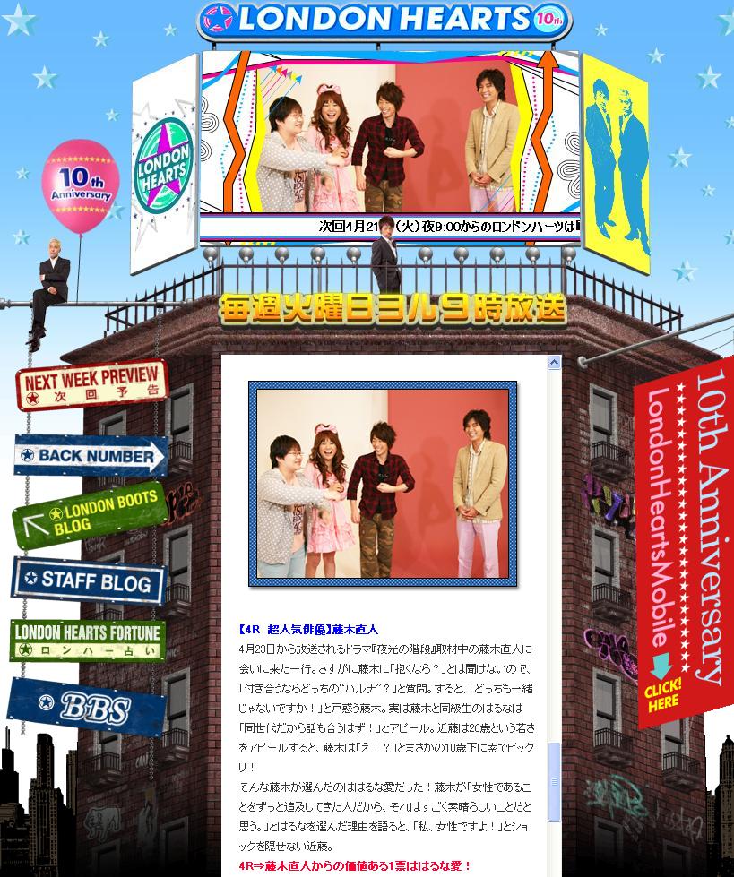 いや~ 長かった。 てか、怒涛の4月でした。 藤木さんの全盛期を知らないんですが、 こんなに忙しい日々を送ったのは初めてです。(^∀^) 嬉しい限りです♪ そうそう。 ようやく、「夜光の階段」の主題歌、バックに流れてたサビ?部分だけ聴けました♪ 「Reverse」を初めて聴いたときは、 昭和のアイドル?(^∀^)って思いましたが、 「CRIME OF LOVE」を初めて聴いた感想は、 平成のアイドル?(^∀^) って思いました~。(^∀^) う~~~~~~~~~~~~~ん(^∀^) いや~ こういう楽曲も良いとは思うんです。 が、 ドラマの雰囲気には・・・ (^∀^) なんかね、藤木さんの良いところでもあるんですが、 こういう曲の、歌ってるときの甘い声。 今回のような大人のドラマの主題歌には、どうなんでしょう?(^∀^) あくまで、ワタシ個人の意見ですが、 合ってねーよっ!(^∀^) でした。(^∀^) 大人な佐山の映像のバックに流れるから、余計に違和感が。(^∀^) 歌詞はまだ全部聴けてないので、わかりませんが、 あの曲は・・・ どうよ。(^∀^) せっかく主題歌で世間一般の方にも聴いて頂けるチャンスなのに・・・ なんで、あんな曲?(^∀^) 「いいんだぜ」の方は、ドラマの雰囲気にも合ってたし、 歌声も素敵で、 キャ~~~~~ッ!!(≧∇≦) 状態だったんですが。。。( ̄∇ ̄;) ハッハッハッ 楽曲によっては大人っぽいのもあるのに~( ̄∇ ̄;) なんでアレ?( ̄∇ ̄;) とにかく、主題歌はがっかりでしたが、 ドラマはなかなか期待できそうです♪(≧∇≦) 楽しみだー(≧∇≦) 「いらっしゃいませ。美しいお嬢様。」にも慣れてきたし。(^∀^) ・・・。 主題歌も慣れてくる?(^∀^) かも?(^∀^) さてさて。 初回オンエアまで、 今日の製作発表、ロンハー、 明日のナニコレ、そして23日の番宣の数々。 大丈夫か。 我が家のレコ。(^∀^) そうそう! 今日のロンハー、面白かったっすねー(≧∇≦) 藤木さんが。(^∀^) ああいうブラッキーな対応は大好き♪(^∀^) でも、何度見てもあの衣装はいただけない。(^∀^) それにしても、23日は大忙しだー!! せっかくの藤木さんの番宣もリアルタイムでは見れない・・・(´;ω;`)ブワッ なぜか、その日に参観日。(´;ω;`)ブワッ ぴっかぴかの一年生になったばかりだから、参観日を取りました。 母として、ね。 で、一年近く放置していた、壊れた眼鏡。 やっと先日、メガネを新調♪ が、そのメガネが出来上がるのが23日。 参観日が終わって、懇談会があって、その後メガネ取りに行って、買い物行って、夕飯作って、片付けて・・・ 「夜光の階段」までは、テレビの前に座れない模様。(-"-;) しかも、肝心の「夜光の階段」すら危うし!(´;ω;`)ブワッ 木曜日はね~ 唯一、ダ~が夜に自宅にいる日。(´;ω;`)ブワッ まあ、BARの定休日が木曜日ってことなんですが。( ̄∇ ̄;) って、毎週じゃ~ん。(-"-;) つーか、初回23日の木曜日は、ダ~の誕生日。(-"-;) あ。 実際はもう過ぎてるんですが、木曜しか家にいないので、一番近い木曜日に・・・。(-"-;) あ"ー 絶対、リアルタイムで見るのは無理だーーーーっ(´;ω;`)ブワッ 深夜に見てやる!>< つーか、さっき思い出したんですよねー ダ~の誕生日。(^∀^) あぶない、あぶない。(^∀^) PR