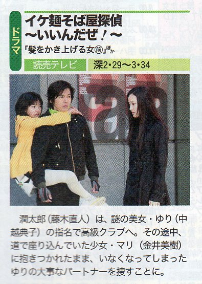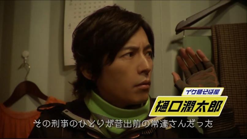 巷では佐山祭りですが、関西ではま~ったく流れないので樋口君祭りで。(^∀^) ※ 激ネタバレです。NGの方はご覧にならないで下さい♪ まず第一印象ですが・・・、 ぬるすぎるやろ~~~~~( ̄∇ ̄;) おもんないぞ~~~~~~~~~~?( ̄∇ ̄;) でした。(^∀^) あ。 前編ね、前編。(^∀^) てか、どうせ型にハマらなくて良い深夜枠で、やりたい放題やるなら 設定の説明や、役どころの説明なんかいらないじゃ~ん。 初めてご覧になる人は、 「え?これ初回じゃないの?続編?」って思うかも知れませんが、 いいじゃん(^∀^) 5話か6話くらいで、脈略なく突然役柄説明するとか~(^∀^) 「今頃かよっ!」って突っ込まれまくりでしょうけど。(^∀^) それか、最後の最後に説明するとか。(^∀^) いっそのことナシにするとか。(^∀^) ホレスタのように八十山兄弟に説明してもらうとか。(^∀^) 誰もちゃんとしたストーリー展開なんて期待してないし。(^∀^) とにかく、何が言いたいかと言うと、初回の内容はつまんなかった。(^∀^) つかみは失敗だね(^∀^) 初めて見た人、かなり脱落したんではないでしょうか。(^∀^) てか、脚本・演出がイマサン~(^∀^) キャスト良いのに、もったいな~い(^∀^) ホレスタ、おもろかったよ~~~~?(^∀^) いや~ ホレスタのぬるさゆるさは大好きだったので、この機会に世間にもその面白さが伝わればいいなあ・・・と思ってたのに、ホレスタの1/10も面白さは伝わらなかったんではないでしょうか・・・( ̄∇ ̄;) 後編が結構面白かったので、勿体ない( ̄∇ ̄;) で、そのなかなか面白かった後編。(^∀^) これがね~ ブログに貼る為に、いろんなシーンをキャプってたんですが、 。゚( ゚^∀^゚)゚。アーッハハ八八ノヽノヽノヽノ \ / \ もうね、竹中さんの表情が。゚( ゚^∀^゚)゚。アーッハハ八八ノヽノヽノヽノ \ / \ おもろすぐる~~~~。゚( ゚^∀^゚)゚。アーッハハ八八ノヽノヽノヽノ \ / \ 「あ!この藤木さん、かっけ~!(≧∇≦)」って思って、キャプった画像を見ると・・・ となりで竹中さんが・・・。゚( ゚^∀^゚)゚。アーッハハ八八ノヽノヽノヽノ \ / \ 。゚( ゚^∀^゚)゚。アーッハハ八八ノヽノヽノヽノ \ / \ 。゚( ゚^∀^゚)゚。アーッハハ八八ノヽノヽノヽノ \ / \ もうね、作業がすすまねーーーー 竹中さんは、反則だーーー でね、キャプってて思ったんですが、この「イケそば」。2度、3度見る方が面白い。 しかも、かなり細かいところまで見るとツボる。(^∀^) 前編は割愛(^∀^) 後編のはじめにイタ子姉ちゃんから説明があったし。(^∀^) てか、こんだけのことを前編約20分もかけて流した、と。(^∀^) あ。 でも、前編で面白いところ一個だけあった(^∀^) 天気が「コロコロ変わるねぇ」って。。゚( ゚^∀^゚)゚。アーッハハ八八ノヽノヽノヽノ \ / \ シーンのつながりの無視っぷりがいいっすね~。゚( ゚^∀^゚)゚。アーッハハ八八ノヽノヽノヽノ \ / \ そして、オープニング(^∀^) でた(^∀^) 藤木PV(^∀^) あ。違うね。一応タイトルバック。(^∀^) タイトルよりサブタイのがメインという。(^∀^) オープニングクレジット。 そして、本編スタート♪ 屋台で樋口君を待つホイッスラー細口。 そこに、樋口君と黒田が加わって3人の小芝居が始まる。 これ、樋口君は適当に合わせて表情作ってるのかなあ?(^∀^) 上手いね~(^∀^) ストーリー展開としては、探偵樋口潤太郎に依頼をするためにやってきたホイッスラー細口。 その依頼内容は?と言うと、♪♫♩♬(口笛)との理由で大切にしていた予備のストラップを盗まれたので探して欲しいというもの。 ここからいきなり樋口君が探偵モード突入。(^∀^) ここから天丼が始まるわけですが。(^∀^) 最初は唇に始まり、ギター・・・、ケース・・・、合計3回かな?(^∀^) お顔は名探偵モードの樋口君ですが、推理?(^∀^)内容はベタベタ~(^∀^) 「くちびる?」にノリツッコミの「そうそう。パツ金の金髪美女に・・・」て。(^∀^)オイ。 ベタすぐるやろお~(^∀^) くくくく(^∀^) 脚本は、ちょ~っと?って感じですが、役者さんの力量で何とかなってるドラマっすね。(^∀^) 「ということはぁ?」 藤木さんは相変わらず、期待を裏切らない表情を見せてくれる♪ ベタな内容でも、藤木さんの表情が楽しめるからよしとします(^∀^) 「ギター・・・」 「ギター?!」 って、ここでCMかよっ。(^∀^) ってツッコんで欲しいんすよね?(^∀^) しかし、三行で済む内容を延々と引き伸ばす、引き伸ばす。(^∀^) まあ、生瀬さんと竹中さんのアドリブのせいもあるかもしれませんが。(^∀^) 「ギター?!」 「伝説のホイッスラーモデルが?!」 暴走する樋口君と黒田(^∀^) 樋口君までそういうキャラに。(^∀^)天丼やるためでしょうけど。(^∀^) ぶち切れるホイッスラー細口。(^∀^) 「話しは最後まで聞けーーーーっ!(^∀^)」 再度話し出すホイッスラー細口。 はい。お約束。天丼っす~(^∀^) 「ギターケース?!!」 熱く語ってまっせ~(^∀^) 地方の思い出のステッカーとかなんとか~(^∀^) 黒いイケメンバイトは有価証券とか言うてるし(^∀^) はい、ホイッスラー細口切れる~(