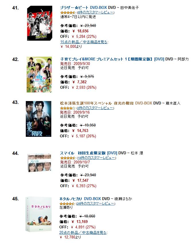 まだだったのかよっ!! って?(^∀^) へへ♪ 別に急がないし~(^∀^) あ、ver9.0のライブDVDは店頭で既に予約済みです♪(^∀^) だって、こっちは一日でも早く聴きたいも~ん( 〃∇〃) 夜光はギリギリでいいか、って思ってたんですが、 画像が変わってるのを見て、つい(*・・)σポチッとしちゃいました~(^∀^) 他は確認してませんが、密林が変わってました。(^∀^) これ、この時期に変わったってことは、これがちゃんとしたBOXパッケージなのかな? ずっと文字だけでしたもんね。 てか、シバトラみたいに文字だけだと思ってた。(^∀^) 特典が期待以上だといいのにな~( 〃∇〃) あんまり期待してないけど。(^∀^) ****************** 追記 ****************** こちらに、特典内容が~(^∀^) http://store.shopping.yahoo.co.jp/guruguru/pcbe-63360.html ん~ 期待できるのか、できないのか。 さあ、どっちだ!(^∀^) ちなみに、ワタシが見たとき夜光は43位でした。 日本ドラマDVDランキグ。(^∀^) ホタルが45位だ~(^∀^) ついでに、シバトラSPは59位でした。 樋口君は、66位でした。 随時更新されてるので、今はそれぞれ何位かわかりませ~ん。(^∀^) このランキングを見た時間は昨日の午後9時頃でした。 そうそう。 今日はいよいよ「もう一つの第二章」オンエアの日ですねー。(^∀^) チョーチョがあまり削られてませんようにっ! あと、イケそば祭り。 そして、おしゃれイズムの収録日。 ってことは、声の更新ある?(^∀^) てか、声より熱やら目やら滞ってるの、なんとかして。(^∀^) 目なんかサボリ過ぎや、っちゅーねん。(^∀^) 「現場の今をいちはやくお届け!」って。(^∀^) どこがやねん(#^∀^)゛o゛