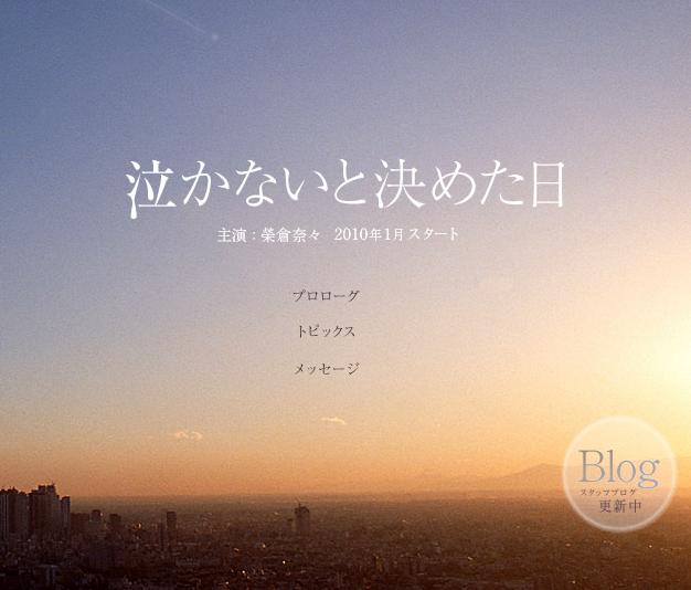 所謂、プレサイトですね。(^∀^) 「泣かないと決めた日」 http://wwwz.fujitv.co.jp/nakanai/index.html スタッフブログがあるので、いろいろ楽しめそうかな? http://blog.fujitv.co.jp/nakanai/index.html コメディ要素皆無ですか・・・。( ̄∇ ̄;) そんなん火曜に見るかなあ・・・。( ̄∇ ̄;) 自分に余裕が無い時に重たい作品は見る気になれないタイプなんで~。( ̄∇ ̄;) 今、余裕がない訳じゃないですが。(^∀^) 逆に余裕ありまくり?(^∀^) 問題なく見れるか~(^∀^) ワタシに限っては、ですが。(^∀^) そうそう。 藤木さん、こちら方面にいらしてたようで。(^∀^) へぶが、会社休めば良かったーっ!(T-T) って悔しがってた♪(^∀^) 今更ですが、昨日の視聴率。(^∀^) 12.2% 20:00-20:54 EX__ 木曜ミステリー・その男、副署長 11.4% 22:00-22:54 CX* フジテレビ開局50周年記念ドラマ・木曜劇場・不毛地帯 11.0% 21:00-21:54 EX__ 木曜ドラマ・交渉人~THE NEGOTIATOR~ PR