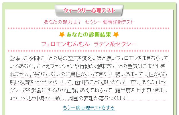 ワタシは、関西人ですが うどんは嫌い。(^∀^) 蕎麦派です。 というか、蕎麦が大好き。(≧∇≦) 注:樋口君は関係ありません(^∀^) 樋口君の好みも画像も。(^∀^) で、お好み焼きは嫌い。(^∀^) たこ焼きは好き。 どう違うねんっ! って?(^∀^) 全然違うよ~(^∀^) ちなみに、夕食がたこ焼きの日がある。(^∀^) あと、ラーメンも好き♪(^∀^) 特に、奈良のさいかラーメンが好き。(^∀^) パスタも好き。 でも、オイル系限定。(^∀^) クリームもトマトも嫌い。(^∀^) 息子達はミートソースが好き。(-"-;) ソースだけでも食べる。(-"-;) なので、冷凍保存もできるしミートソースは大量に作ります。( ̄∇ ̄;) でも、ミートソースは栄養満点なので助かる。(^∀^) ここぞとばかりに、息子達の苦手な野菜をふんだんに入れて作ってます。(^∀^) でも、全然気づかない息子たち。(^∀^) あ。 隠し味にハヤシライスのルーを入れると美味しいですよ♪(^∀^) そうそう。 たまたま昨日「英介スペシャル」を見てたんですが、 もんじゃ屋さんのシーン。 明太もちチーズだったんだ~(^∀^) 今頃気づいたのかよっ! って?(^∀^) てか、明太もちチーズは定番っすよね。(^∀^) 知らないけど。(^∀^) これもどこかで話題に出てた、セクシー診断とかなんとか。(^∀^) >解説読んでると、直人はまさに男版のこれだなぁと。 と、書いてあるのでワタシの診断結果ですが、貼っておきます。(^∀^) へぶは「あえてねらって露出度UPでお願いします(≧∇≦)」 って書いてたけど、 ワタシは今のままがいい。(^∀^) 妄想のしがいがあるから。(爆) 一応ご紹介。 どこか。(^∀^) → http://necessary719nao.blog.shinobi.jp/Entry/531/ PR