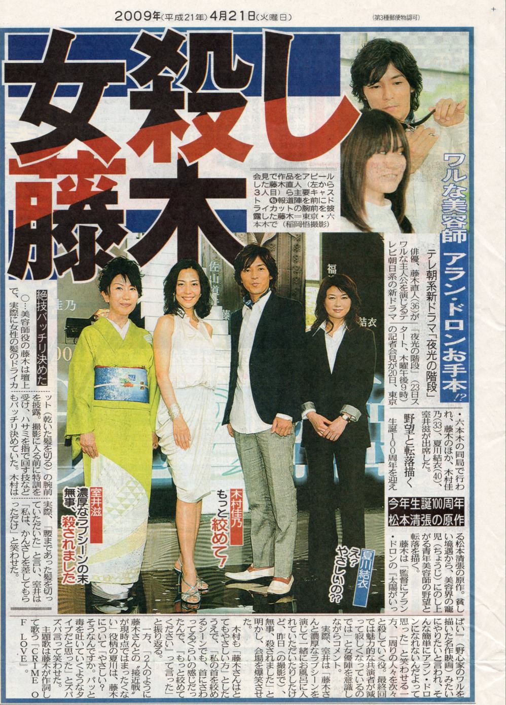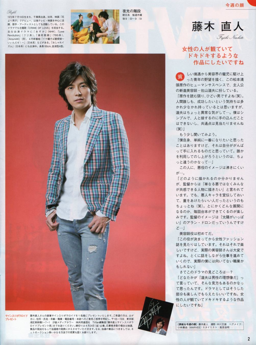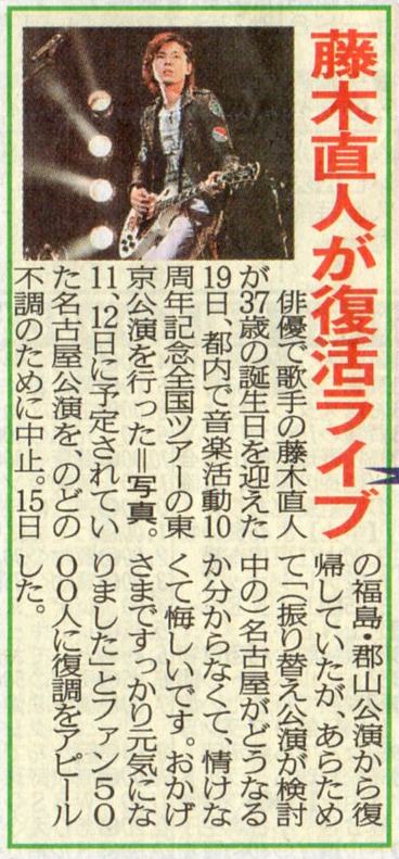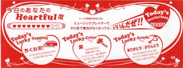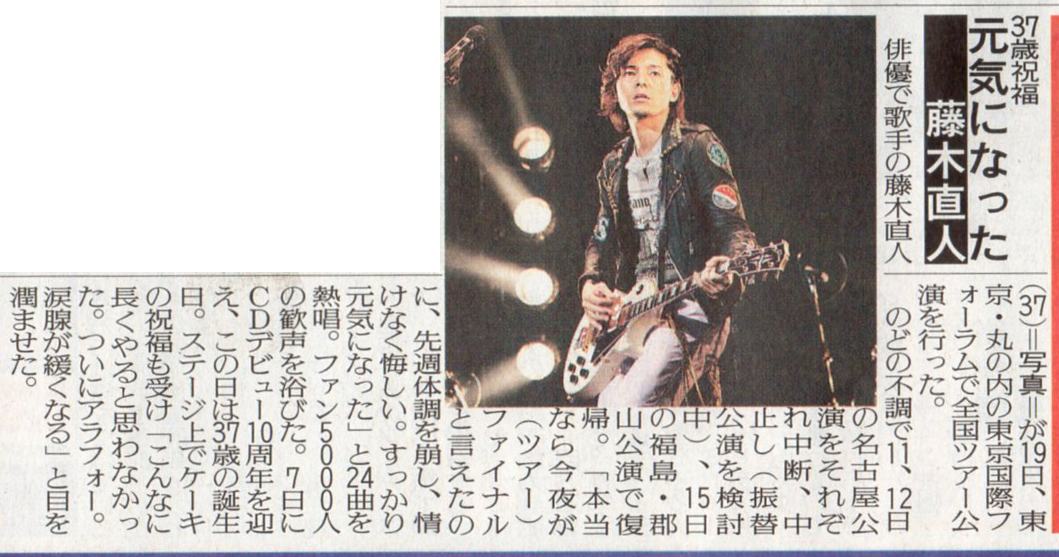 その前に、まずはスポ紙。 遅くなりましたが、報知とデイリーだけ買ったのでご紹介。 まずは、デイリー。 続いて報知。 ニッカンやスポニチにも載ってましたが、こちら地方活字のみでした。 このスポ紙に掲載されている写真好きだー( 〃∇〃) 髪、伸びましたねー( 〃∇〃) どうか、切らないで。( 〃∇〃) 当分、ヒマなんですよね?( 〃∇〃) 役どころによっては切らないといけないかもしれないけど、当分はお仕事なさそうだし、是非このままで。( 〃∇〃) あ。 基本、ロン毛の男性は大っ嫌いです。(^∀^) (ミュージシャンはOK(^∀^)) が、藤木さんに限ってはロン毛パーマのが好き。(^∀^) 短いと爽やか好青年すぎんねん。(^∀^) 全く関係ないですが、福○さんは短い方がよろしいんではないでしょうか。 ★ 追記 ★ 忘れてた。こちらの記事も、ついでに~。 デイリーです。 さてさて、本題。 頂いた紙モノのご紹介♪ まずは明治安田のTVガイド。 続いては、住友TVfan。 そして、べいび~ちらし。 で、こちらは静岡に参戦したへぶから頂いた。(^∀^) 最初、ゴミがまざってるんかと思ったぜ。(^∀^) これ、下の切り取り具合、ご覧になれます?(^∀^) 。゚( ゚^∀^゚)゚。アーッハハ八八ノヽノヽノヽノ \ / \ さすが、へぶ。(^∀^) でも、ありがと。(^∀^) あ、もう一個。(^∀^) 東京中日スポーツ。 あとは、ご紹介できないようなモノなので・・・。(^∀^) って、どんなんやねん。(^∀^) で、会場で頂いた紙モノも、雰囲気だけですがご紹介。 夜光のDVDの広告?が入ってました♪( 〃∇〃) そして、2DAYS特典。 雰囲気だけですが。 それすら、ひやひやしながらアップしてます♪(^∀^) 2DAYS購入者限定、会員特典ですからね・・・( ̄∇ ̄;) これ、Mな御人とHな御人との対比なのかなあ?(^∀^) 左のぴんき~な藤木さんの背後にはミュージシャンな藤木さんの写真が~。 右のシックな藤木さんの背後には俳優の藤木さんがいっぱい。(^∀^) でも、どっちもギターもってるね。(^∀^) 遊んでる藤木さん。 飲んでる藤木さん。(^∀^) 注:お酒じゃありません。(^∀^) 最後は、ツアーの日付が書いてあるページにチケットホルダーなるものが。(^∀^) てか、10年でようやく人間になったのか?(^∀^) この右側のページがそうですね。 で、2DAYSの日付は入ってません。 チケを入れると、完成するんですね!(≧∇≦) ってことで、入れてみました。(^∀^) ぱちぱちぱち・・・。 ↑これって、1人で寂しく拍手してる雰囲気にはぴったりの表現だと思うんですが、 ちょっと、寂しい。てか、空しい。( ̄∇ ̄;) それから、ついでにおみくじ(^∀^) 毎回、ハートの数が大量のワタシ♪(^∀^) で、ありがとうかりんとうに入ってるカード。(^∀^) ワタシ、東京で初めて買ったので知らなかったんですが、キャッチコピー(?)がおもろすぎる! 。゚( ゚^∀^゚)゚。アーッハハ八八ノヽノヽノヽノ \ / \ ウケ狙いじゃなかったら、爆笑してごめんなさい。(^∀^) かりんとうはまだネット販売されるみたいなので、一応ぼかしました。 きんぴらの方は、辛い!と聞いてたので食べてみましたが、 普通に甘かった。( ̄∇ ̄;) それから、ついでに本日発売のテレビ誌。 ジョンかな? ドラマグランプリ?が発表になってました。 主演俳優枠で、記者票で5位に藤木さんが。 おしゃれもめずらしくMC3人のお写真。 多分、ジョンだったと・・・。 なんかの一言、ってコーナーがジョンかガイドにあったと思うんですが、 そこにも、藤木さんが。 「水谷豊さんより覚えてますよ!」 こんな感じの一言が取り上げられてました。(^∀^) それと、もう一つの20世紀少年?か何かの番組が、またあるのかな? その欄には、カンナとちょーちょのあの写真が。 イケそばは全くなし。(^∀^) 多分。 以上。(^∀^) PR