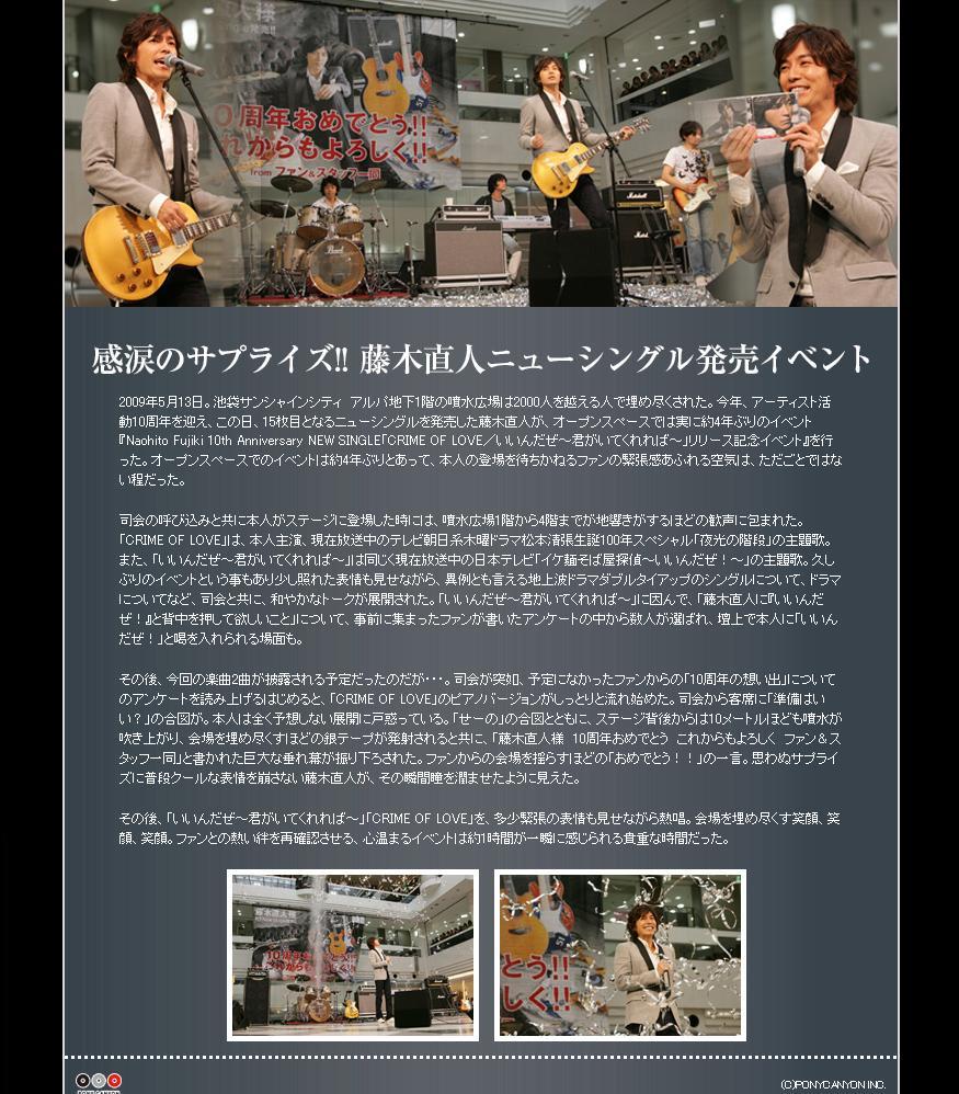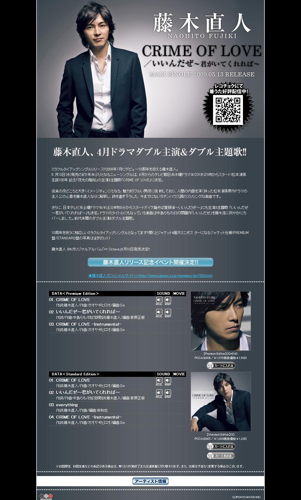 てか、第一弾ってシングル?(^∀^) 第一弾 第二弾 第三弾 は、ポニキャニサイトをご覧下さい。(^∀^) http://music.ponycanyon.co.jp/ ←いきなり音出ます♪要注意☆ こちらは藤木さんページ。更新されてます♪ http://www.ponycanyon.co.jp/fujiki/ 今回、紙モノは3弾についてるのんだけ?(^∀^) それって、写真とかも載ってるのかな? やっぱ、パチのん? 「Growth」みたいなん出して欲しい~ ツアーで言うと、ver3.0までしか入ってないから、最近ファンになったワタシとしては、 その間を埋めて欲しい。(^∀^) でも、第4弾ってキリが悪いし~ 第5弾くらいまであってもいいよ?(^∀^) PR