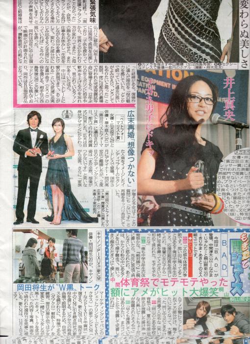 ☆スポ紙関連追記しました~☆ ■ 2009/10/27(火) 第十回ベストフォーマリスト賞を受賞 ■ 広末涼子:藤木直人「緊張」のエスコート 結婚は「まだ全然」 ベストフォーマリスト受賞 毎日jp 2009年10月27日 http://mainichi.jp/life/today/news/20091027mog00m200031000c.html?inb=rg 毎日jp 画像はこちら♪ http://mainichi.jp/life/kirei/graph/20091027/ ■ 広末、ブルーの“マーメイド”ドレスで悩殺 『第10回ベストフォーマリスト賞』 オリコン (eltha) http://beauty.oricon.co.jp/news/70114/?id=TOP1 ■ <広末涼子>藤木直人が「緊張」のエスコート 結婚は「まだ全然」 ベストフォーマリスト受賞 yahooニュース http://headlines.yahoo.co.jp/hl?a=20091027-00000017-maiall-ent http://headlines.yahoo.co.jp/cm/main?d=20091027-00000005-oric-ent&s=created_at&o=desc あ。今回もコメント投稿付きだ・・・( ̄∇ ̄;) ネタりか http://netallica.yahoo.co.jp/collect/mark/98270 ■ 広末、再婚は「想像つかない」 フォーマリスト受賞で 47NEWS 2009/10/27 17:25 【共同通信】 http://www.47news.jp/CN/200910/CN2009102701000587.html ■ サンスポ http://www.sanspo.com/geino/news/091027/gnj0910271800014-n1.htm ■ デイリー http://www.daily.co.jp/newsflash/2009/10/27/0002474636.shtml ■ 日テレNEWS24 http://www.news24.jp/entertainment/news/168692.html 動画 NEW! http://www.news24.jp/entertainment/movie/292184.html ■ 報知 (2009年10月28日06時01分 スポーツ報知) http://hochi.yomiuri.co.jp/entertainment/news/20091028-OHT1T00053.htm ※ フォーマルウエアの日本フォーマル協会 ・ベストフォーマリスト授賞 現時点ではまだ前回の受賞者まで ■ WS ・フジ、めざまし FBIで告知のあったフリップ?のコーナーにご出演♪ 6時代にも受賞の模様が流れました♪ こちらは音声有りでした。(^∀^) ・TBS みのさんの番組(^∀^) フジと同じシーンが流れたと思います。音声有りでした。(^∀^) ☆ 追記 ☆ ニッカン、無かったはず(^∀^) スポニチ、広末さんのみでっかく載ってた(^∀^) サンスポ、載って無かったはず(^∀^) ってことで、デイリーと報知。(^∀^) デイリーの方が若干大きいかな?(^∀^) 写真も良い感じ~( 〃∇〃) でも、記事には一切藤木さん出てこず~(^∀^) 報知は写真はイマイチですが、ちゃんと藤木さんのコメントも載ってました。(^∀^) てか、スポ紙 阪神の城島ばっか~(^∀^) あ~んど、中山美穂さん?が扱いデカい。(^∀^) まあ、WSもそうでしたけど・・・。(-"-;) 全然関係ないけど、 最後に視聴率。(^∀^) *8.4% 21:00-21:54 CX* オトメン(乙男)~秋~ 11.2% 22:00-22:54 CX* リアル・クローズ ************** Google ************** 検索履歴(^∀^) 面倒なので、そのまんま貼ります(^∀^) 更新時間 2009.10.28 15:15 広末涼子、再婚は「まだ全然」時事通信 - 1 時間前