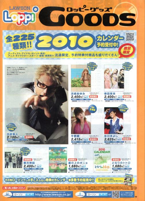 忙しい(^∀^) 運動会の予定が。(^∀^) が! なんて、親孝行なんでしょう!(^∀^) 見事に名古屋の週を外しての日程!(^∀^) つってもですね、 名古屋行けるのは13日だったりするんですけどね。(^∀^) まず、明日の10/3が3号の運動会♪( 〃∇〃) 一年生の運動会は可愛いから好き~( 〃∇〃) で、4号が10/24♪( 〃∇〃) チビの運動会はもっと可愛いから好き~( 〃∇〃) 明日は重箱五つくらい分のお弁当を作りますよ~(≧∇≦) 雨でも。( ̄∇ ̄;) はい。 こちら地方雨っす。( ̄∇ ̄;) 中止の告知は7時に校門に貼り出すとかなんとか~。( ̄∇ ̄;)おい。 なので、一応作っておかなければ。( ̄∇ ̄;) そうそう。 ローソンカレンダーのカタログが出てましたね♪ もちろん、例のお写真ですが。(^∀^) 一応・・・。 藤木さんの写真は今回は表紙には無し~( ̄∇ ̄;) 前回は小さいながらもあったんですけどね~( ̄∇ ̄;) 去年の。(^∀^) ちなみに、去年のブログ。(^∀^) で、ちなみにパートⅡ。(^∀^) 去年カレンダー画像が変わったのは10/10でした。(^∀^) で、今年の。 ちっせ。(^∀^) ついでに、LIVE版に載ってたカレンダーの宣伝。(^∀^) 来年のカレンダーも、やっぱり表紙が一番なのかな?(^∀^) さて。 FBIに動きも無いし、熊さんメモも特筆することも無いし~ 明日のお弁当のお買い物にでも行ってきます。(^∀^) では。(^∀^) PR
